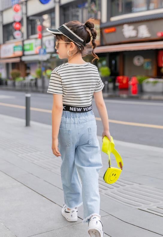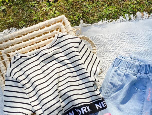 2点セット】新作 子供服 ベビー服 アパレル 半袖 ボーダー tシャツ +ジーンズ 女の子