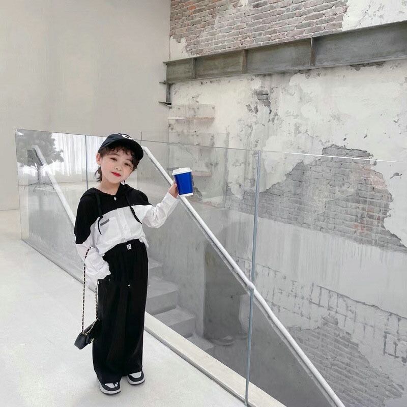 ワイドパンツ フード付スウェット ドッキング上着 シャツ+パン