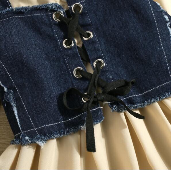 子供服 ファッション シャツワンピース ベスト セットフリル 可愛い 子供服 キッズ 3色