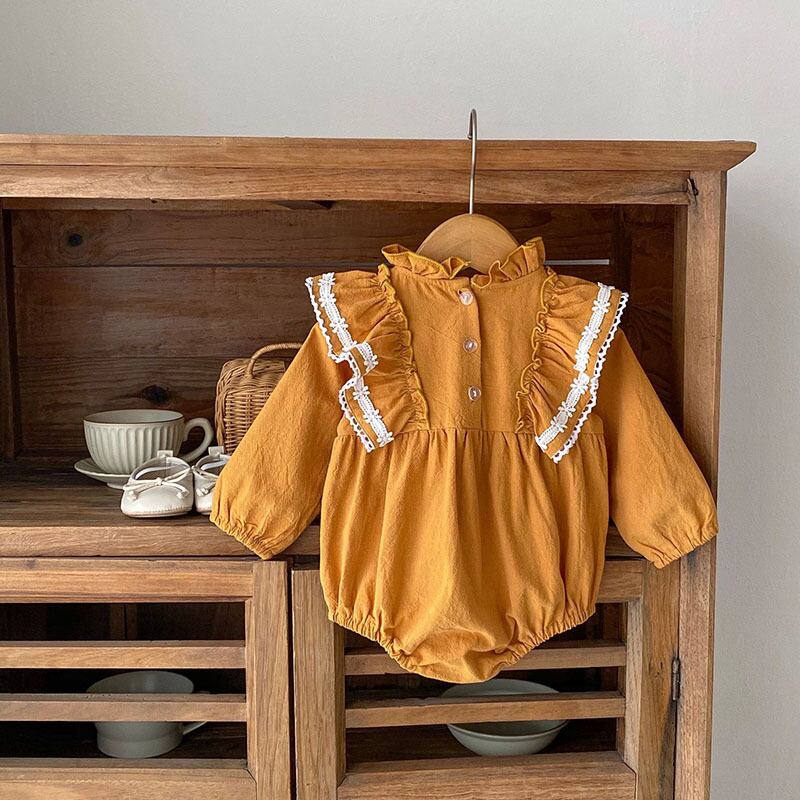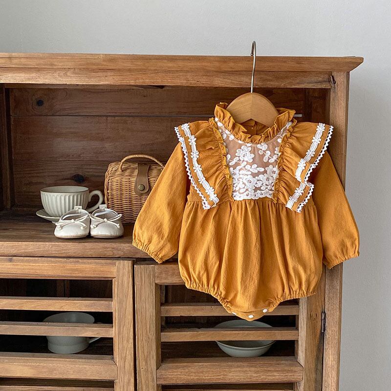 ガールズ 連体服 フリル 花柄刺繍レース オシャレ ロンパース カバーオール